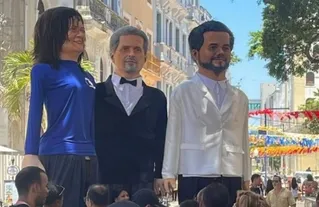 Kleber Mendonça e Wagner Moura viram bonecos gigantes de Olinda