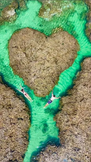 Uma formação recifal em formato de coração, localizada no mar da Ponta Verde, em Maceió, tem se consolidado como cenário de pedidos de casamento. Apenas no último ano, cerca de 50 pedidos foram realizados no local, que ganha maior visibilidade durante a maré baixa, quando o mar apresenta condições favoráveis para passeios.