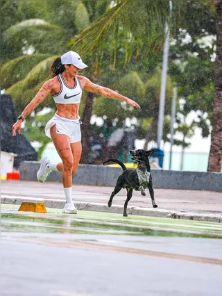 A influenciadora digital e atleta Juliana Muniz passou a organizar os cuidados com o animal. Além de acompanhar a rotina, criou um perfil nas redes sociais para dar visibilidade à história. “Eu decidi criar a fama dele de cachorrinho atleta porque queria que ele ficasse protegido”, explica. A estratégia acabou transformando o cachorro em símbolo informal da causa animal na orla.