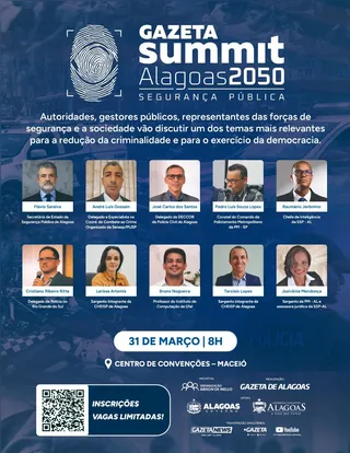Ações como essas serão discutidas no dia 31 de março, em mais uma edição do Summit Alagoas 2050, realizado pela Organização Arnon de Mello (OAM), que reunirá especialistas para debater um dos temas que mais impactam a sociedade: a Segurança Pública.