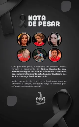 Em nota, a Prefeitura de Delmiro Gouveia lamentou profundamente a morte das vítimas e prestou solidariedade aos familiares e amigos, destacando a comoção causada pela tragédia.