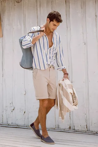 Bermudas de alfaiataria mantêm o look arrumado, mesmo no calor, enquanto calças amplas, feitas de tecidos que respiram, garantem conforto e estilo. Já nos pés, calçados confortáveis e elegantes são ideais para qualquer ocasião.